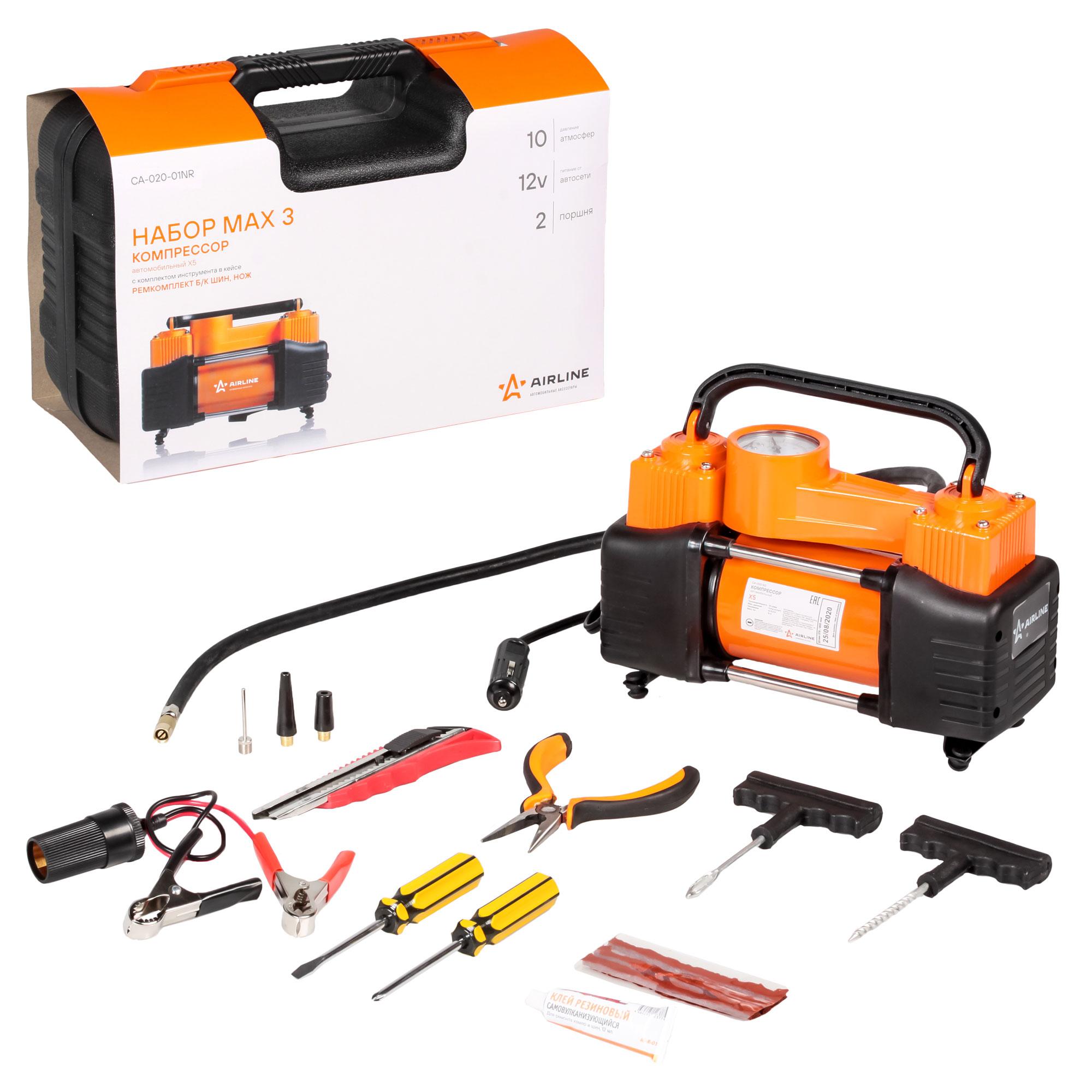Компрессор а/м Airlain STANDART X5 50л/мин до 10 атм метал с манометром + инструмент CA02001NR