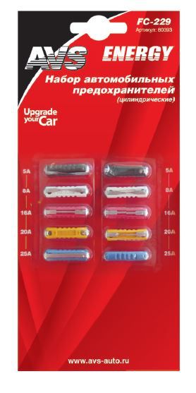 Описание и обзор: Предохранители цилиндрические 5-25А (10шт.) AVS 80393